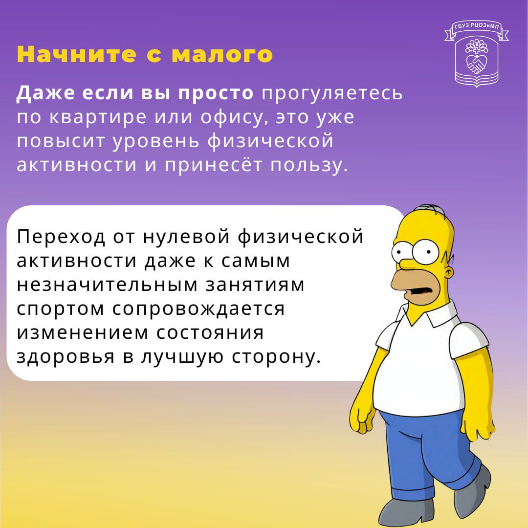 Вместо этого просто прогуляетесь по офису, в обед выйдите на прогулку, сходите в ближайшее кафе, а не заказывайте доставку - это уже повысит уровень физической активности и принесет пользу.
