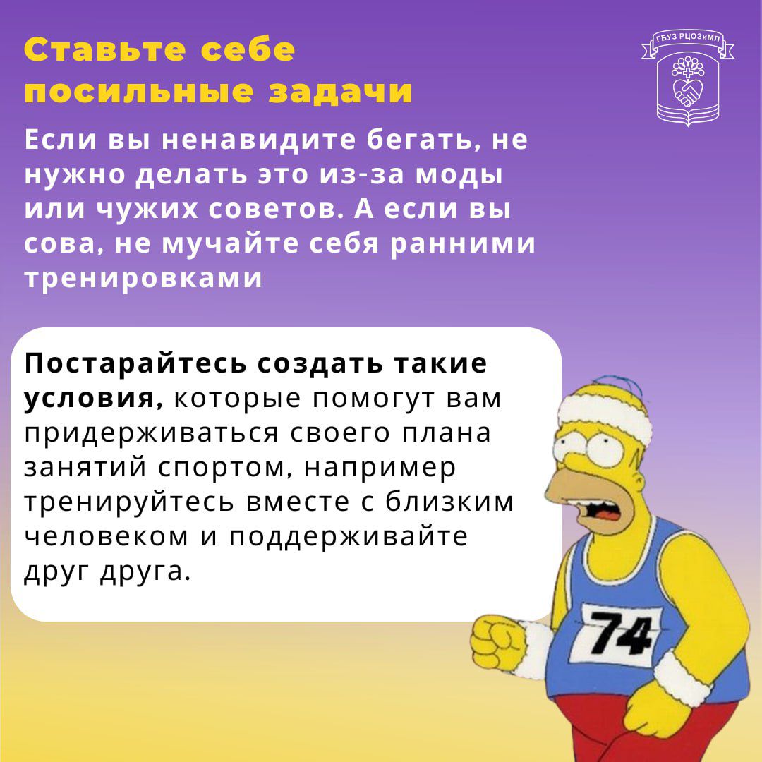 Постарайтесь создать такие условия, которые помогут вам придерживаться своего плана занятий спортом, например, тренируйтесь вместе с близким человеком и поддерживайте друг друга.