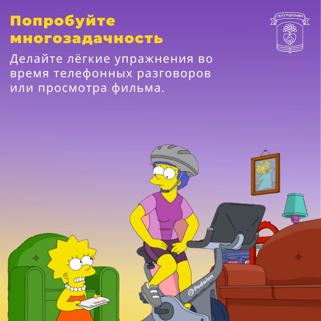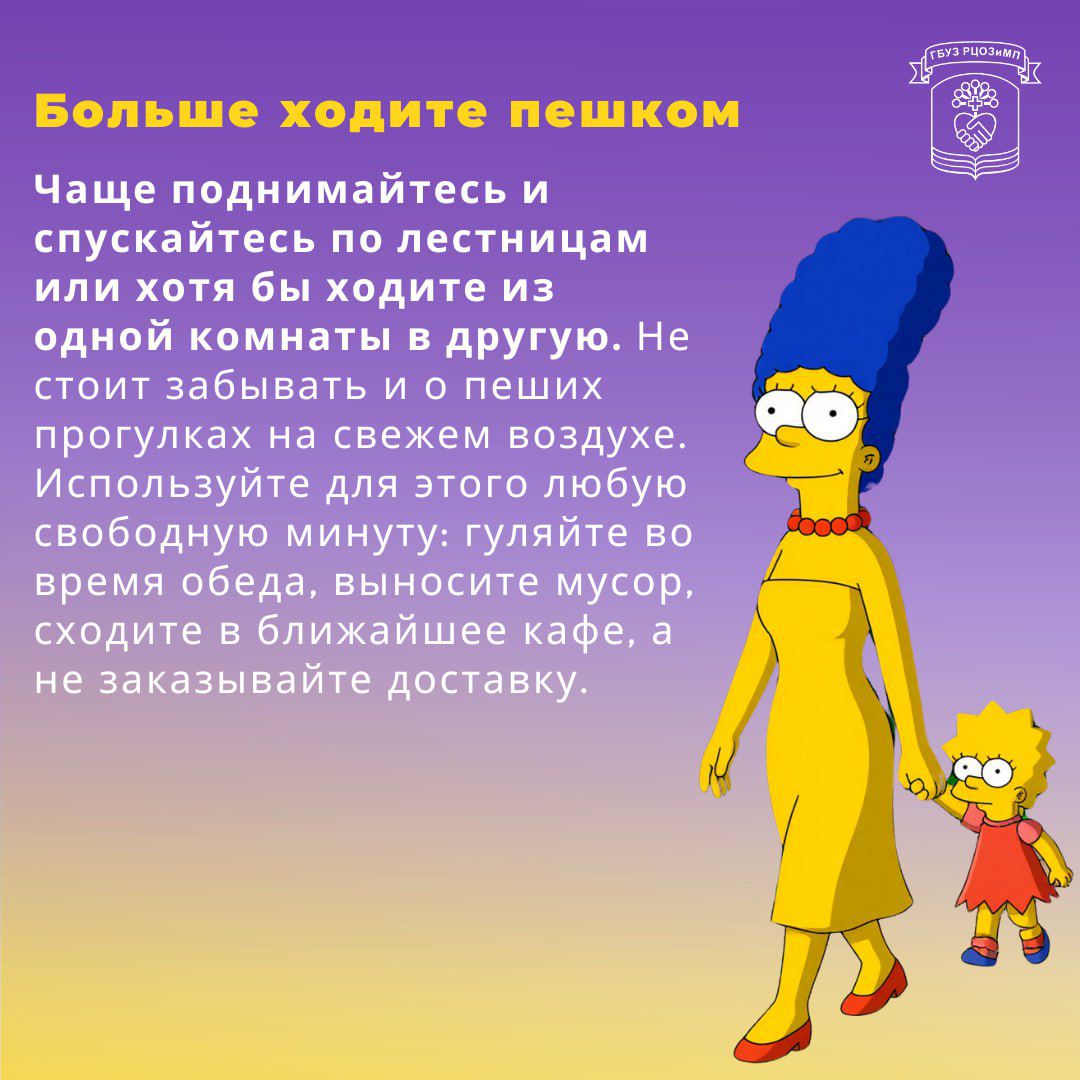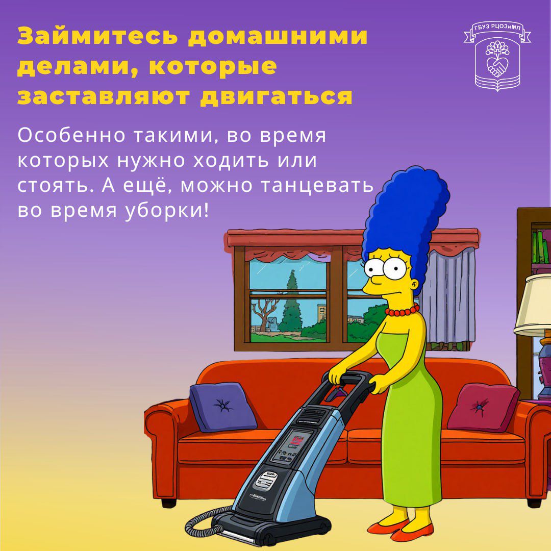 Дома во время уборки включите музыку и потанцуйте. Во время просмотра фильмов или телефонных разговоров делайте легкие упражнения. Больше ходите пешком, чаще поднимайтесь и спускайтесь по лестницам или хотя бы ходите из одной комнаты в другую.