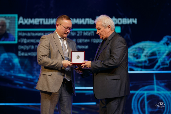 Начальнику котельной № 27 МУП УИС Рамилю Ахметшину присвоено почетное звание «Заслуженный работник жилищно-коммунального хозяйства Республики Башкортостан».Стаж работы у Рамиля Ахметшина больше 40 лет. В МУП УИС он трудится с первых дней образования предприятия.